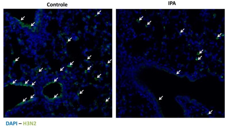 Ao suplementar os animais infectados com uma versão sintética do IPA, os pesquisadores observaram uma redução na carga viral e na inflamação dos pulmões.